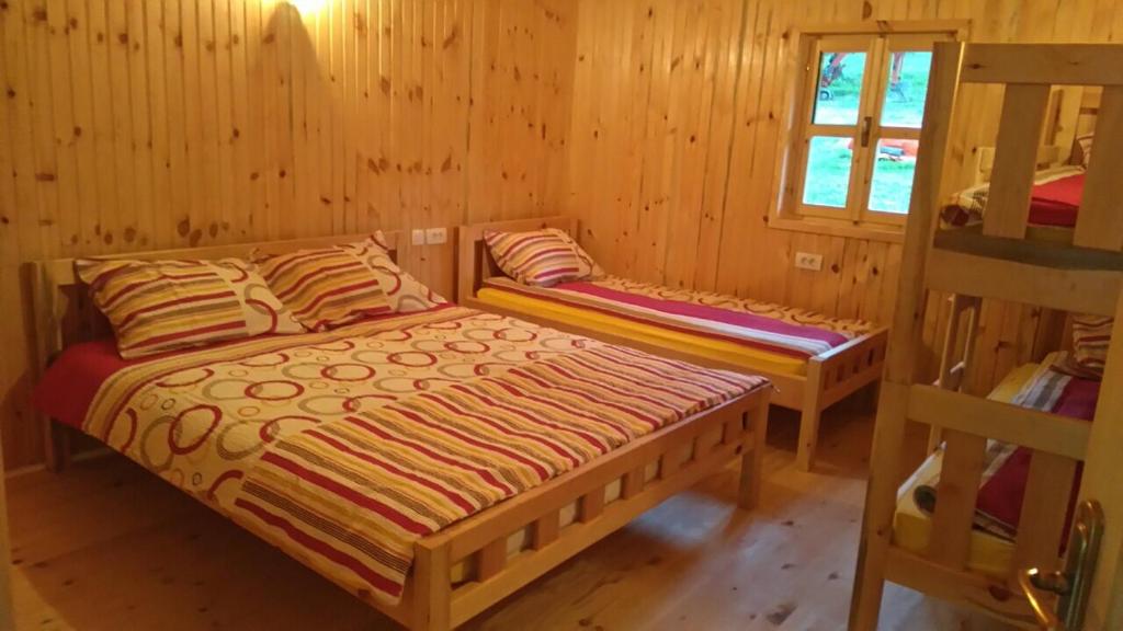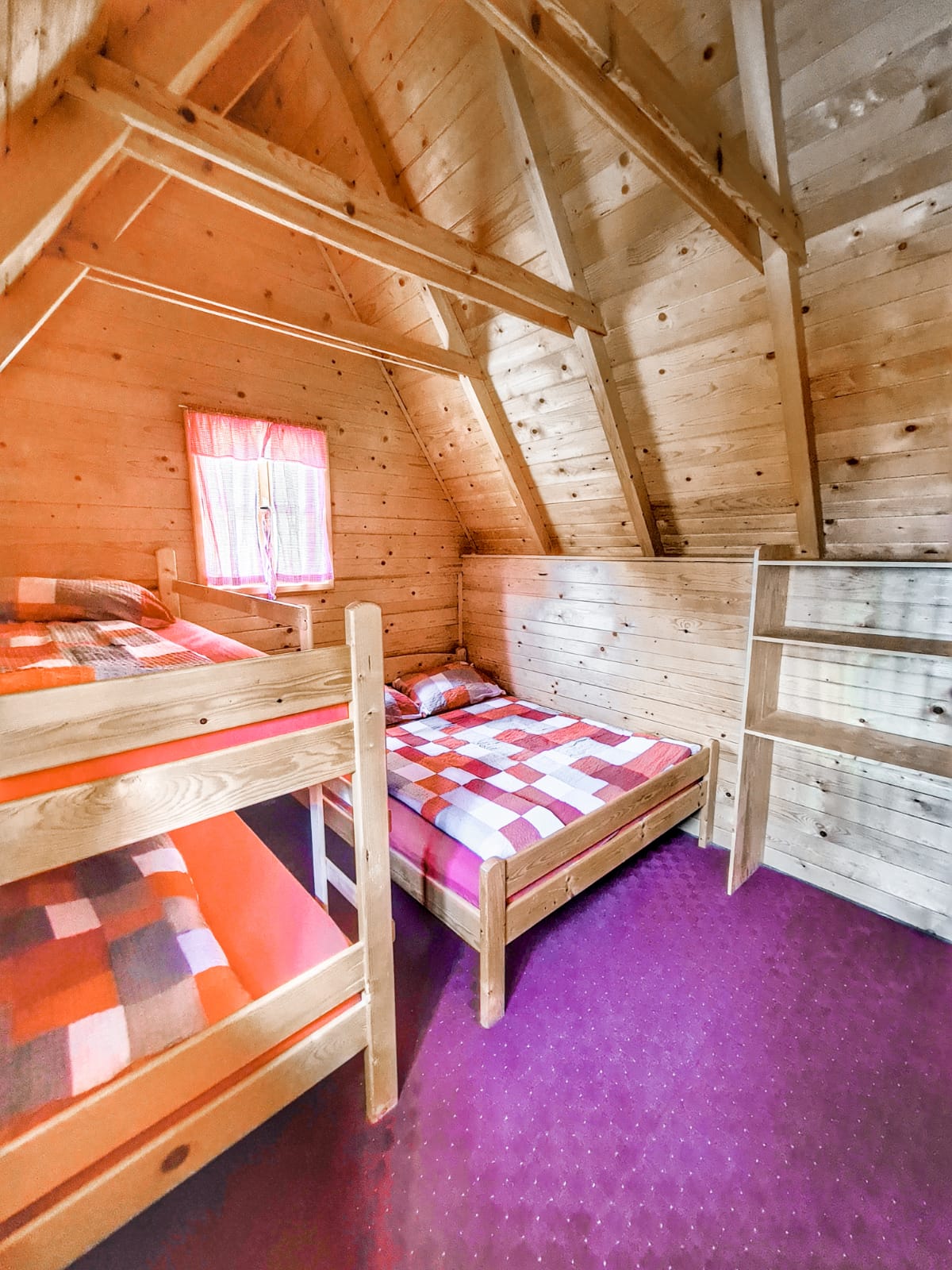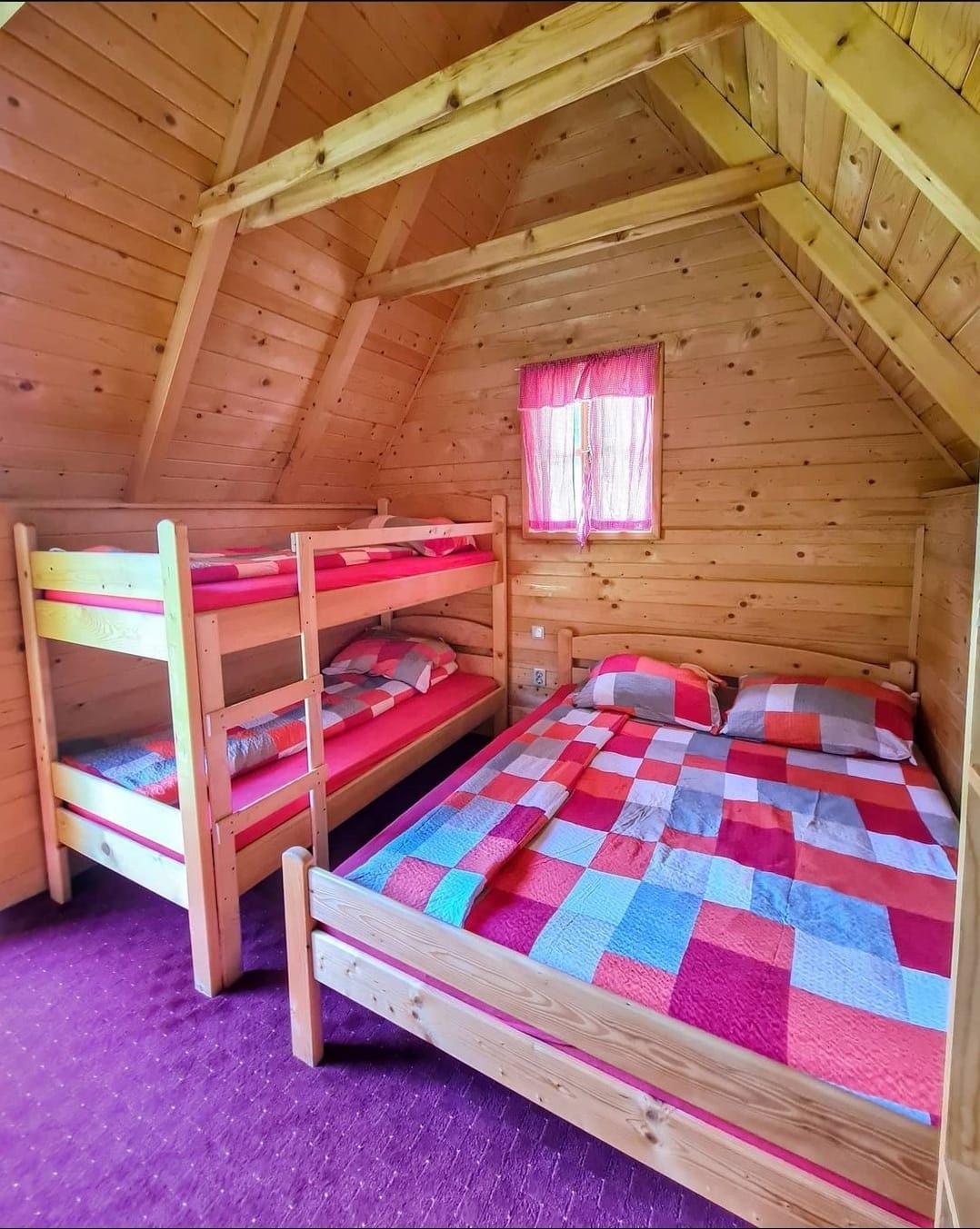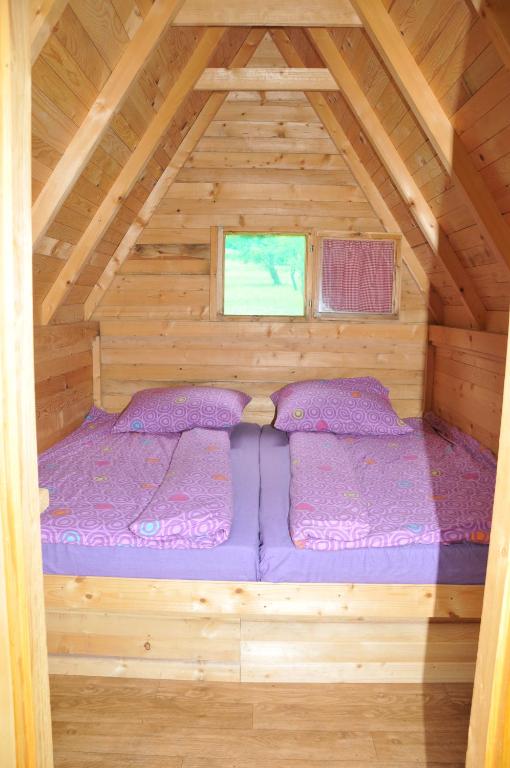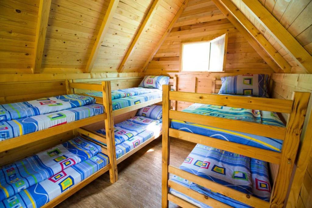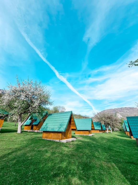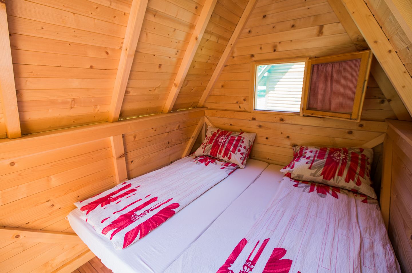 Na divnoj livadi među voćkama nalaze se kućice u kojima vam nudimo smeštaj. Postoje dve vrste bungalova u našem kampu, oni koji dele zajedničko kupatilo i apartmani koji imaju lično kupatilo. A ukoliko imate želju možete da spavate i u šatorima.